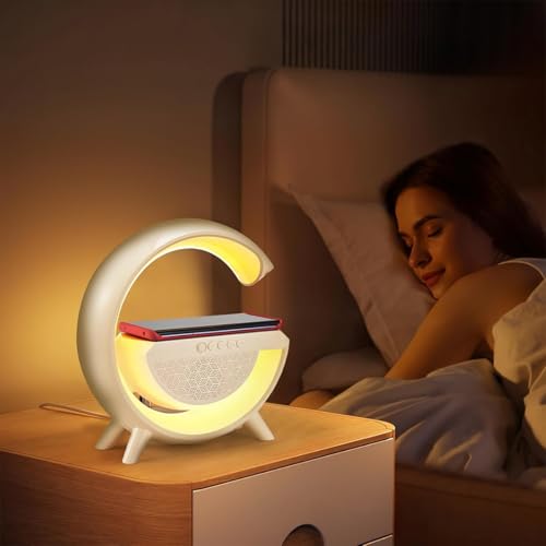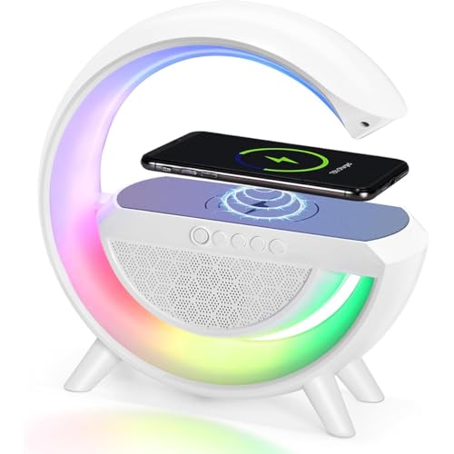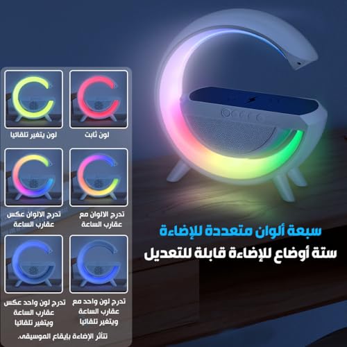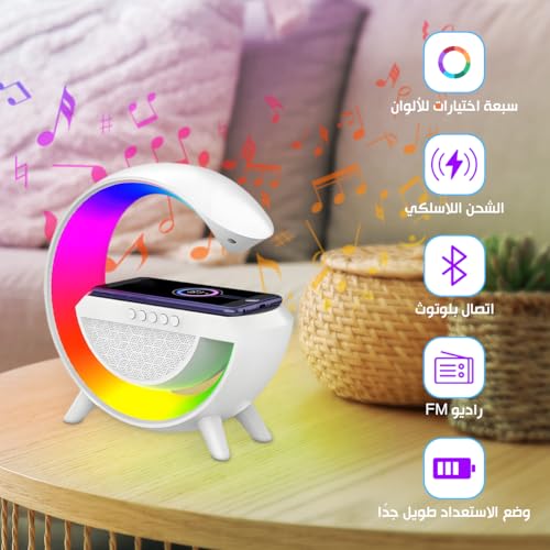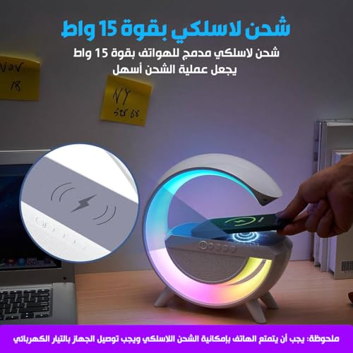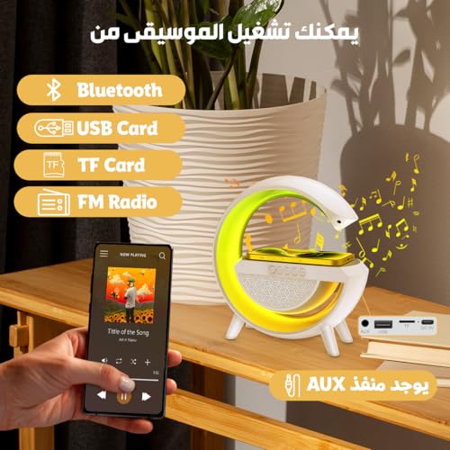 Generic - مكبر صوت لاسلكي 15 وات بإضاءة ليد، شحن لاسلكي، راديو اف ام، بلوتوث، بطاقة تي اف منفذ USB، وضع استعداد طويل للغاية، مصباح طاولة مع 7 ألوان إضاءة لغرفة النوم وديكور الغرفة والحفلات، BT2301