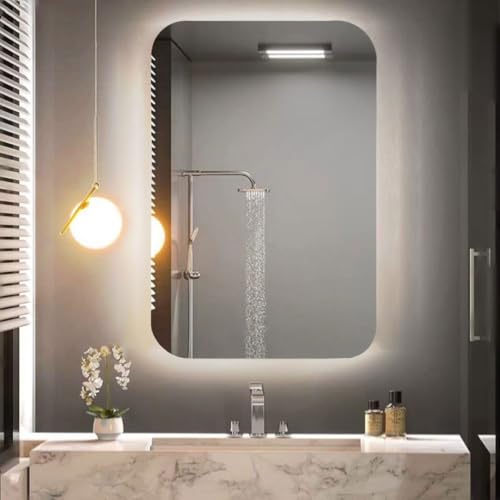 - تصميم عصري: مراية ليد مثبتة على الحائط تتميز بشكل مستطيل أنيق مع زوايا دائرية وإضاءة محيطة صفراء دافئة توفر جوًا مريحًا في حمامك أو غرفة نومك أو منطقة الملابس.