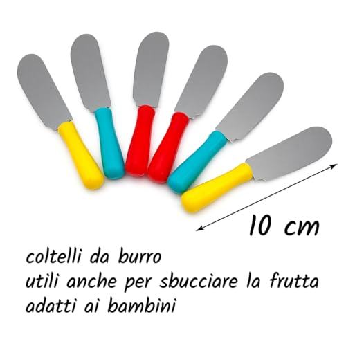 Leddy Living - طقم سكاكين ملونة من الستانلس ستيل للزبدة والجبن والفواكه من ليدي ليفينغ، مجموعة من 6 قطع، متعددة الوظائف، مقاومة للصدا وسهلة التنظيف، مثالية للمطبخ والنزهات والطاولة الانيقة