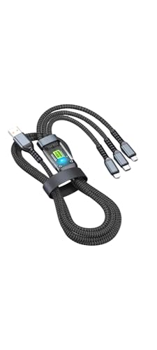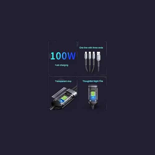 Generic - كابل شحن مضفر 3 في 1 للشحن السريع بقوة 100 وات من ليدينو، نقل بيانات فائق السرعة وطول 1.2 متر، كيبل USB نوع A الى نوع B للهواتف الذكية من ذكر الى أنثى