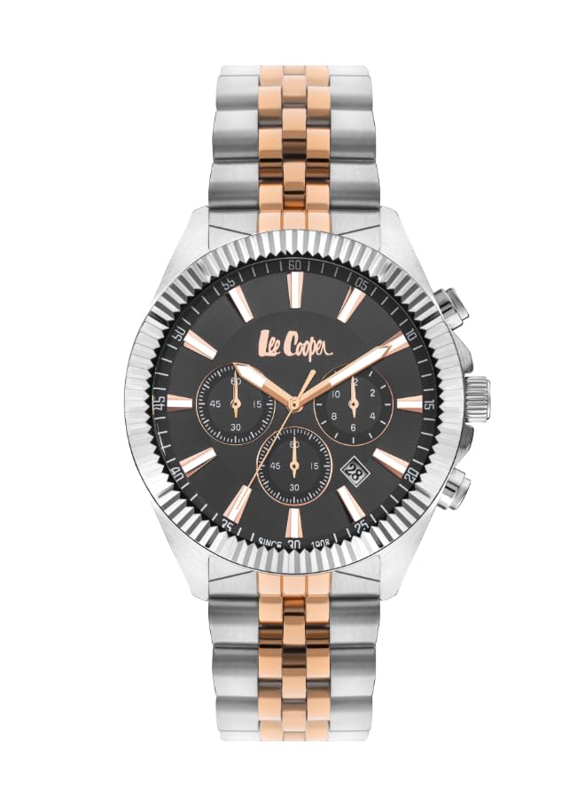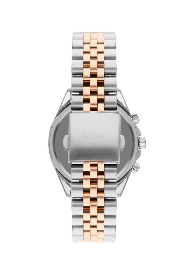 Lee Cooper - لي كوبر ساعة حركة PE932 للرجال، شاشة متعددة الوظائف وسوار معدني - LC07838.560، فضي/ذهبي وردي