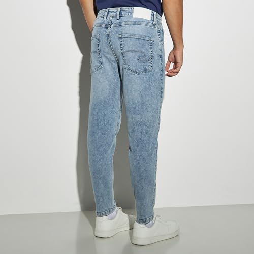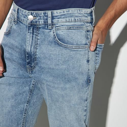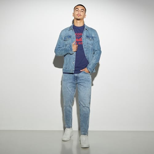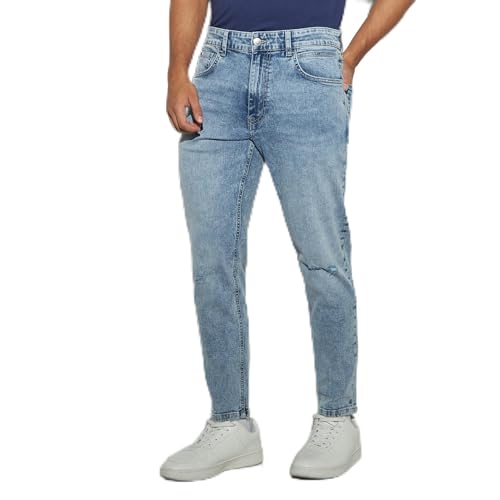 Lee Cooper - لي كوبر بنطلون جينز بقصة ضيقة وازرار للاغلاق للرجال مقاس 36، لون ازرق