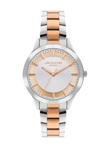 Lee Cooper - لي كوبر ساعة بحركة 2035 للنساء، عرض انالوج وسوار معدني - LC07880.530، فضي/ذهبي وردي