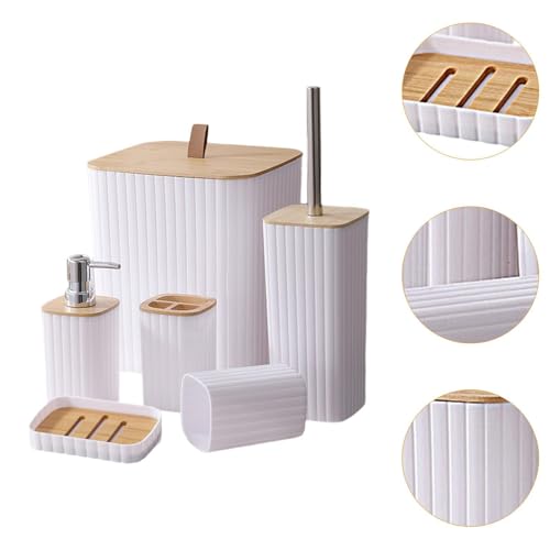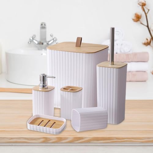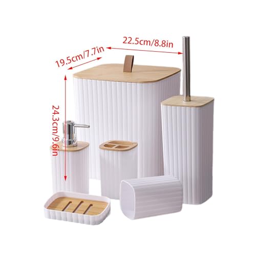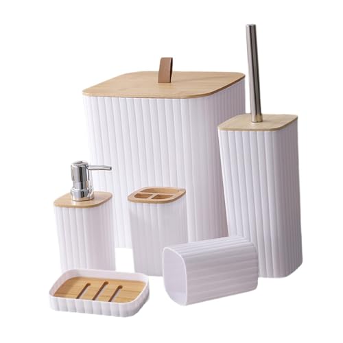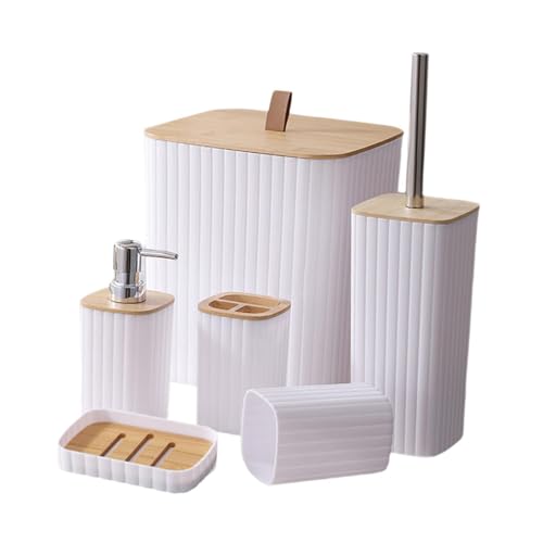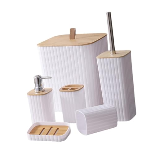 Generic - سلة مهملات وموزع صابون من ليفاسي مكونة من 6 قطع بتصميم بسيط ومزخرف، مجموعة اكسسوارات حمام متينة وطبق صابون للفنادق والمطاعم والحمام، ابيض