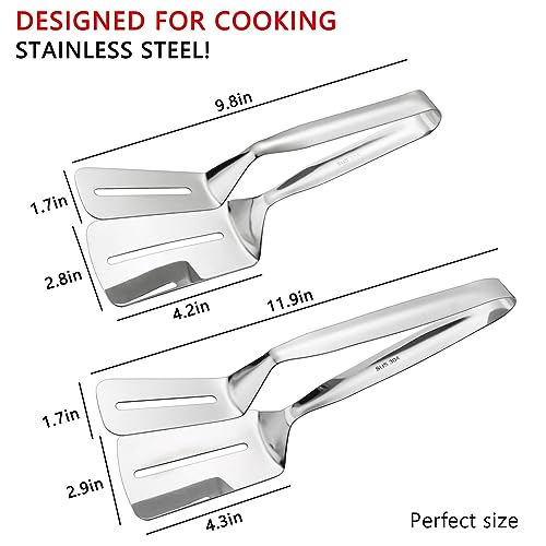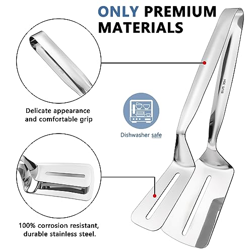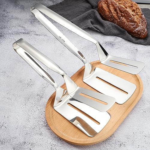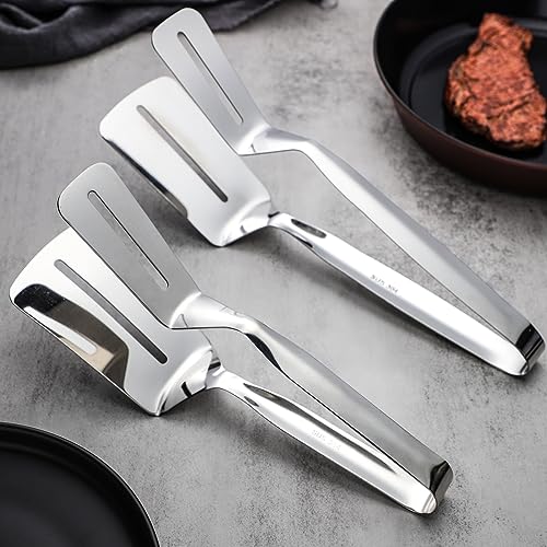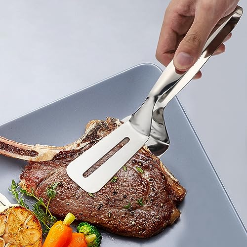 - طهي متعدد الاستخدامات: هذه الملاقط المصنوعة من الفولاذ المقاوم للصدأ رائعة لتقطيع شرائح اللحم والجبن المشوي والبرجر والسندويشات المشوية والسلمون والنقانق وما إلى ذلك. كما يمكن استخدامها كملعقة سباتولا.