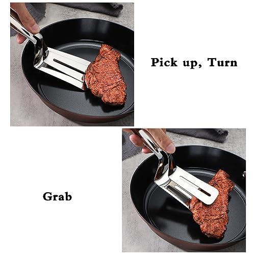 Leegg - مشابك ستيك من الفولاذ المقاوم للصدأ 3 في 1، ملاقط طبخ لشرائح اللحم البقري والخبز والشواء من ليج (فولاذ مقاوم للصدأ)، مجموعة من قطعتين