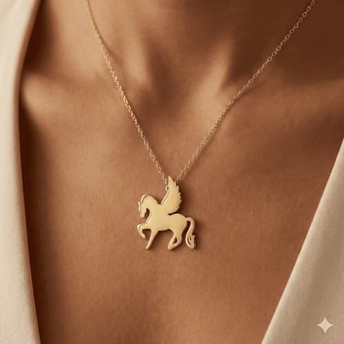 Generic - قلادة الحصان المجنح "بيغاسوس" الأسطورية للنساء مطلية ذهب عيار 18 قيراط | دلاية رمز الحرية والطموح بتصميم ناعم | مجوهرات راقية لمحبي الخيول | هدية ملهمة