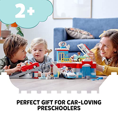 LEGO - لعبة بناء للأطفال 10948 لجراج وموقف سيارات من ليجو دوبلو تحتوي على مغسلة ومحطة وقوف للسيارات؛ جديد 2021 (112 قطعة)، بلاستيك