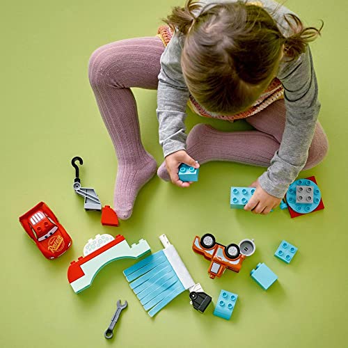 - مرح غسيل السيارة من ليغو DUPLO للبناة الصغار – يمكنكم نقل الأطفال إلى عالم أفلام سيارات من إنتاج Disney and Pixar مع مجموعة اللعب مرح غسيل برق بنزين وسيارة ماطم (10996)