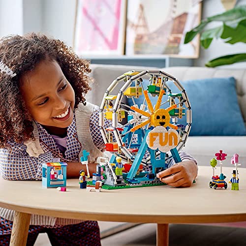 LEGO - مجموعة بناء عجلة فيريس 3 في 1 31119 من ليجو مع العاب سيارات ممتصة للصدمات ومراجيح قوارب قابلة لاعادة البناء و5 مجسمات صغيرة (1002 قطعة)، بلاستيك