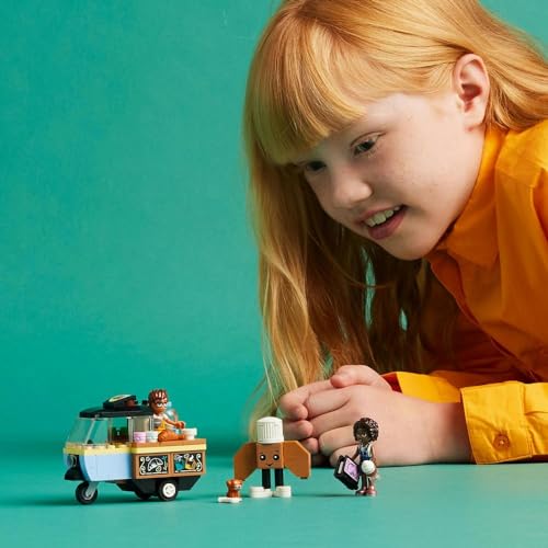 LEGO - مجموعة لعب عربة المخبوزات المتنقلة من LEGO® 42606 Friends، فكرة هدية طهي للأطفال من البنات والصبيان بعمر 6 سنوات أو أكثر مع شخصيات الدمى الصغيرة آليا وجولز ونموذج الكلب إيرا.