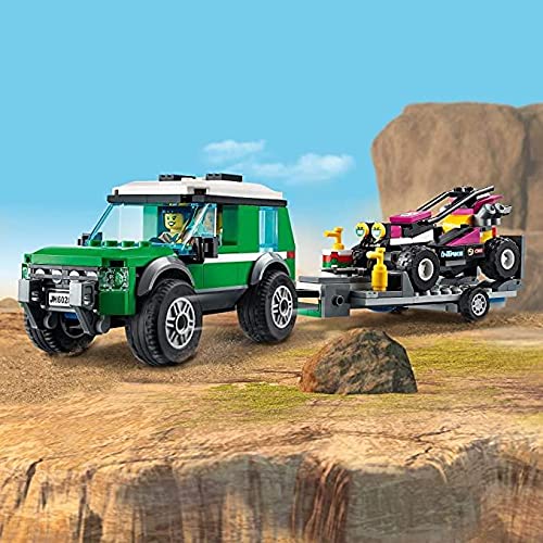LEGO - ليجو 60288 سيتي جريت فيلز ريس باجي ترانسبورتر شاحنة مع مقطورة وسيارة سباق باجا قابلة للتوجيه