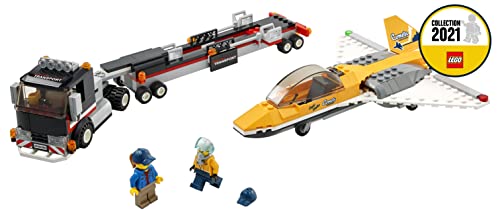 LEGO - ليجو لعبة شاحنة نقل جيت ترانسبورتر من سيتي جريت فيلز 60289 مع مقطورة وطائرة نفاثة بلاستيك