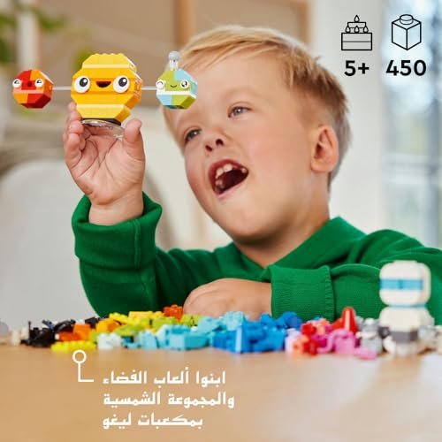 LEGO - لعبة المجموعة الشمسية القابلة للبناء للأطفال كواكب الفضاء الإبداعية من ليغو كلاسيك، مجموعة بناء مكوك الفضاء ونماذج الفضاء للصبيان والبنات بعمر 5 سنوات أو أكثر، هدية لرواد الفضاء الصغار 11037