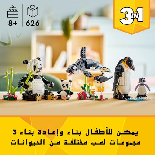 LEGO - ليجو لعبة الحيوانات البرية 3 في 1 من كريتور: لعبة عائلة الباندا طراز 31165 - تتحول إلى شخصيات بطريق أو العاب حوت أوركا - مجموعة بناء للبنات والأولاد بعمر 8 سنوات فما فوق - هدية عيد ميلاد إبداعية