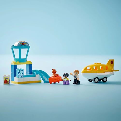 LEGO - لعبة المهارات الحركية التعليمية للصغار دوبلو فيرست تايم ات ذا ايربورت، تحتوي على طائرة وشخصيتين ودب تيدي، مناسبة لعيد الميلاد للبنين والبنات بعمر سنتين فما فوق من ليجو، 10443