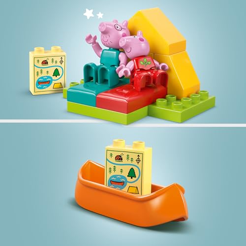 LEGO - مجموعة لعب بناء رحلة التخييم من ليغو DUPLO Peppa Pig مع زورق لعبة، مجموعة بناء تنمّي المهارات الحركية الدقيقة وتحفّز اللّعب الإبداعي للبنات والصبيان بعمر سنتين أو أكثر، هدية ممتعة للأطفال 10452