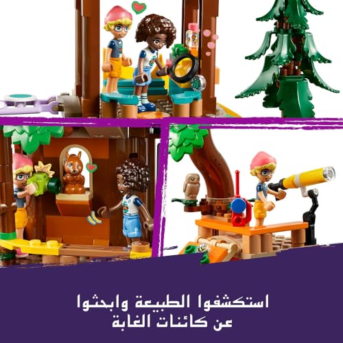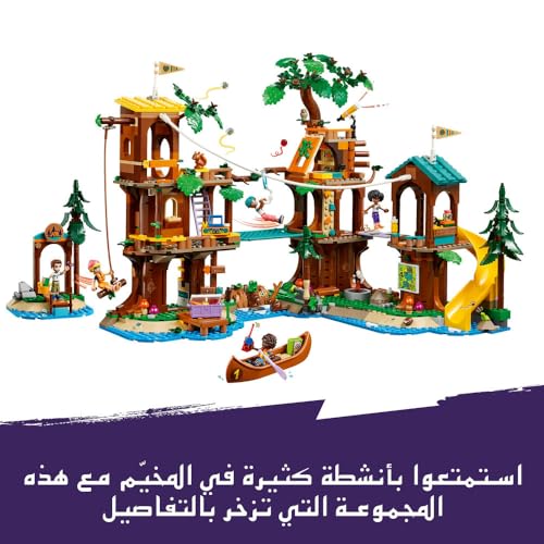 - مجموعة ألعاب التخييم - لعبة بيت الشجرة في مخيم المغامرات من فريندز من ليجو للبنات والأولاد من سن 8 سنوات فما فوق تأتي مع 5 مجسمات صغيرة والكثير من مجسمات الحيوانات.