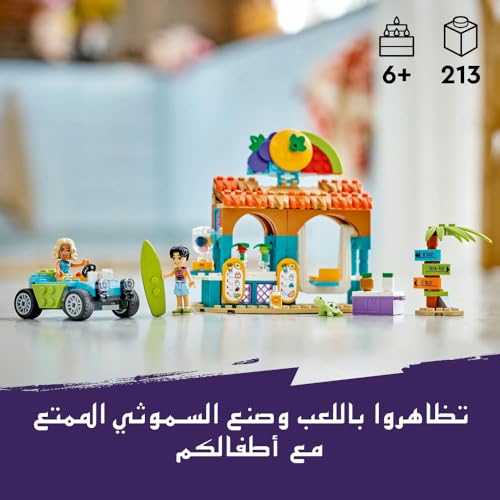 LEGO - كشك سموثي على الشاطئ من LEGO® Friends، مجموعة التظاهر باللعب بالطعام للأطفال، فكرة هدية للصبيان والبنات بعمر 6 سنوات أو أكثر مع دميتين صغيرتين وشخصية سلحفاة وملحقات 42625