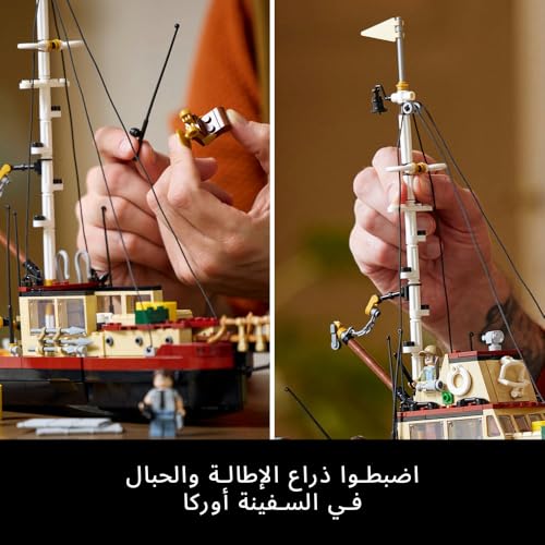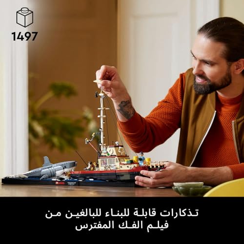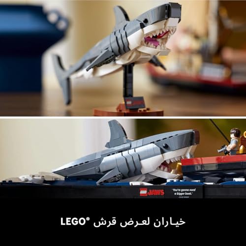 LEGO - مجموعة بناء أفكار Jaws، مجموعة نماذج ديوراما للبالغين، تتميز بقارب سمكة قرش وحوت أوركا، بالإضافة إلى شخصيات صغيرة من Chief Brody وHooper وQuint، هدية تذكارية من الأفلام للرجال والنساء، للرجال أو