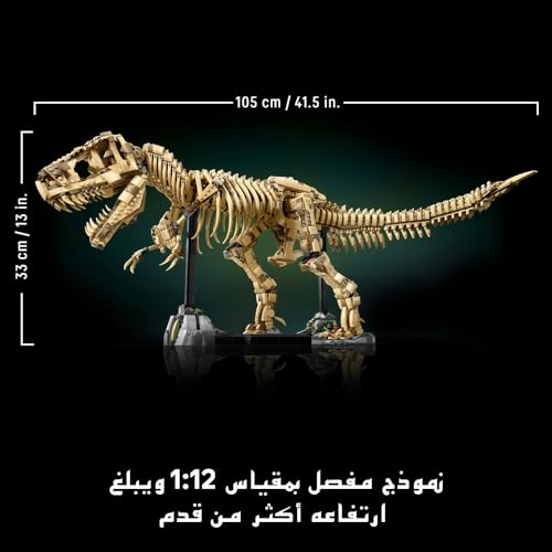 LEGO - حفريات الديناصورات: تيرانوسورس ريكس من ليغو Jurassic World، مجموعة بناء نموذج ديناصور مع رأس متحرك وفك قابل للفتح ويدين، قطعة عرض ليغو قابلة للتجميع تبعث الحنين إلى الماضي، هدية ديناصور للبالغين 76968