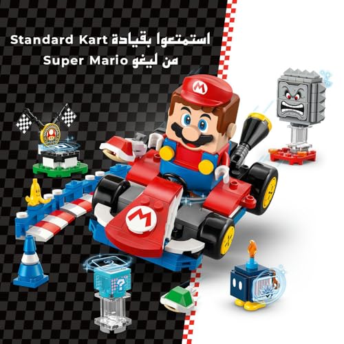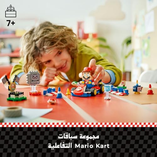 LEGO - لعبة ماريو كارت التفاعلي وسيارة الكارت القياسية مع مضمار سباق ألعاب مع سيارة و3 شخصيات مجسمة ومنصة تتويج وحواجز مثالية للاعبين من عمر 7 سنوات فما فوق من ليجو - 72043