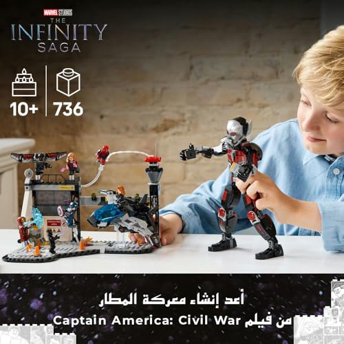 LEGO - معركة تشويق كابتن أمريكا: الحرب الأهلية من ليغو Marvel، مواجهة المطار القابلة للبناء مع 8 شخصيات صغيرة، مغامرة لعبة البطل الخارق للأطفال للبناء واللعب، هدية للصبيان والبنات بعمر 10 سنوات أو أكثر 76314