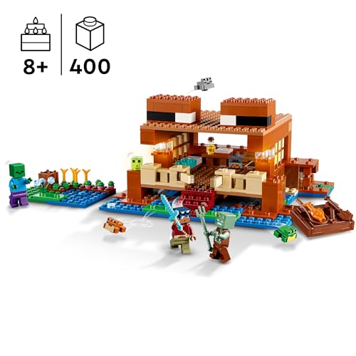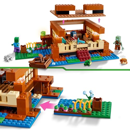 LEGO - لعبة بناء منزل الضفدع من ليغو Minecraft، لعبة بناء للأطفال الذين يحبّون لعب الأدوار والتشييد ونماذج حشود الحيوانات، تضم مستكشف المستنقع وزومبي، هدية للصبيان والبنات بعمر 8 سنوات أو أكثر 21256