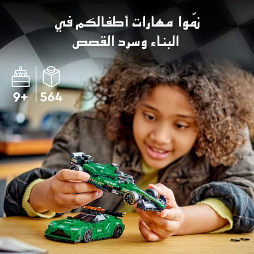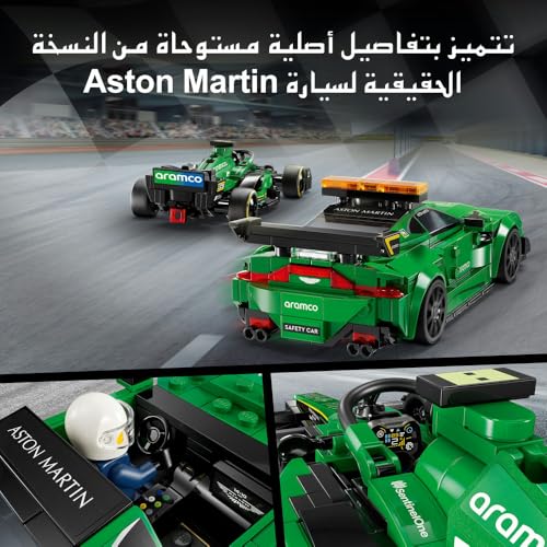 LEGO - ليجو لعبة سيارة امان استون مارتن من سبيد شامبيونز وAMR23، مجموعة العاب نموذجين من المركبات، مجموعة بناء للاطفال، مع شخصيتين مصغرتين، هدية للاولاد والبنات بعمر 9 سنوات فما فوق 76925