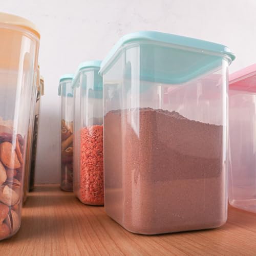 - – طقم عملي مكون من 3 علب بأحجام مختلفة (3100 مل، 2100 مل، 1400 مل) يناسب تخزين كميات متنوعة من البقوليات، الأرز، المكرونة، الحبوب، السكر والدقيق بطريقة منظمة.