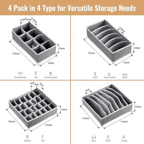 LEHSGY - ليه اس جي واي 4 قطع من منظمات ادراج الملابس الداخلية وحمالات الصدر القابلة للطي، منظم ادراج الملابس الداخلية، فواصل ادراج خزانة الملابس القماشية لملابس الاطفال واللانجري والملابس الداخلية والبانتي