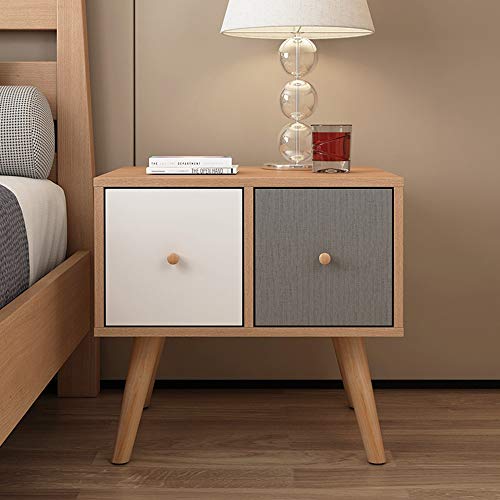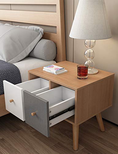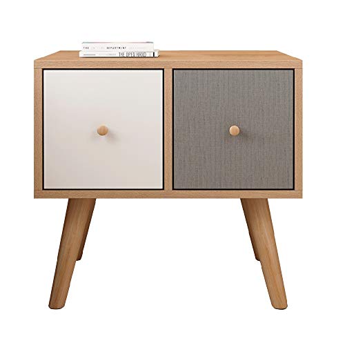 Leileixiao - ليليشياو طاولة بجانب السرير بمضخة فردية ومزدوجة من نورديك - خزانة جانبية / خزانة / درجين، خشب، بيج
