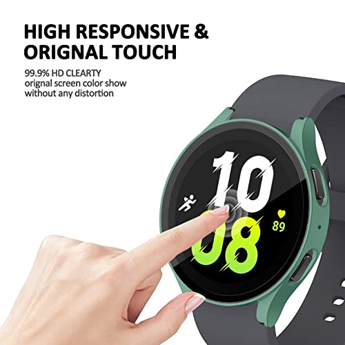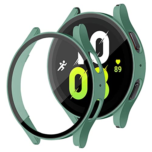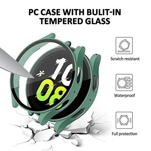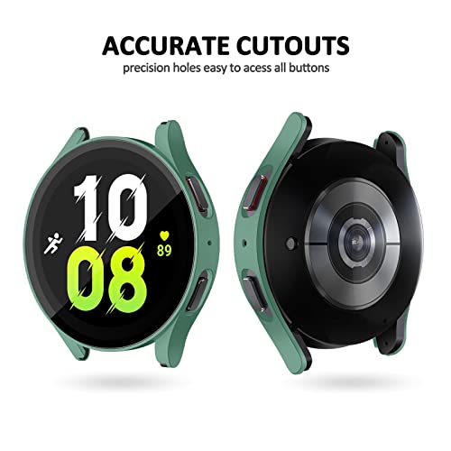 LEIXIUER - شاشة حماية متينة للساعة مضادة للسقوط من البولي كربونات الصلب والزجاج المقوى متوافقة مع ساعة جالاكسي ووتش 5 بلوتوث مقاس 40 ملم-44 ملم وLTE 44 وجالاكسي برو 45 لون اخضر