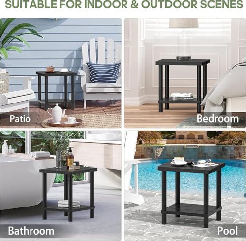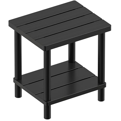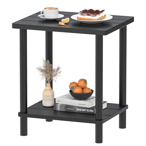LEJANEOYE - طاولة فناء خارجية صغيرة من ليجانوي، طاولة جانبية خارجية مع رف تخزين من طبقتين، طاولة بجانب السرير للمساحات الصغيرة في غرفة المعيشة وغرفة النوم والمكتب باطار ثابت والشرفة، سهلة التجميع