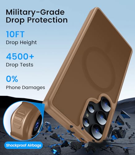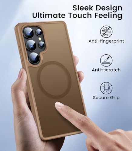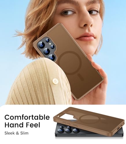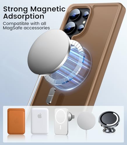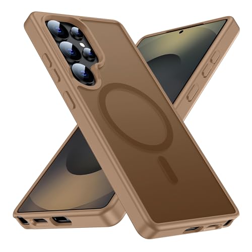 LEKEVO - جراب مغناطيسي لموبايل سامسونج جالاكسي S25 الترا من ليكيفو [متوافق مع ماج سيف] [حماية الكاميرا] ظهر صلب شفاف غير لامع بتصميم عسكري مقاوم للسقوط مع حافة ناعمة ورفيعة ومضادة للصدمات (بني)