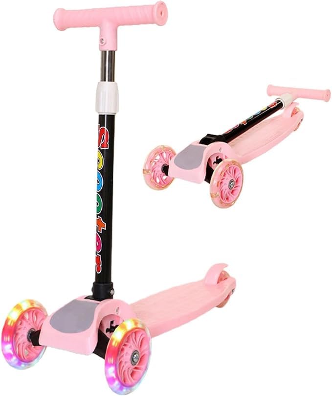 GHAZAL - سكوتر أطفالي قابل للطي 3 عجلات فلاش للأولاد والبنات بارتفاع قابل للتعديل وعجلات بولي يوريثان من ليلي، هدية رائعة (وردي)، هيكل يحتوي على الألومنيوم، طفل صغير