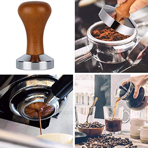 Lemacyh - مكبس قهوة خشبي سطح من الستانلس ستيل مع يد خشبية الاسبريسو باريستا - 51 ملم