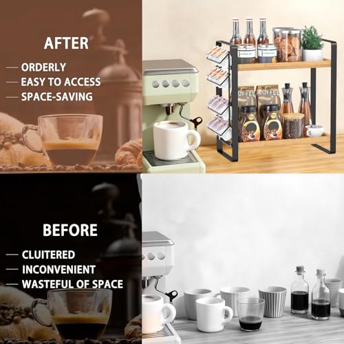 - فكرة هدية مذهلة: أفضل فكرة هدية - للآباء والزوجة / الزوج والابنة والأصدقاء. رف منظم القهوة هذا ذو مظهر رائع وعملي وجودة مذهلة هو هدية رائعة لمحبي القهوة في الانتقال إلى منزل جديد أو عيد الشكر أو الكريسماس أو حفلات أعياد الميلاد، مما يضفي جوًا ريفيًا وأنيقًا على أي غرفة. تخزين مثالي لسطح الطاولة أو الطاولة حيث تكون المساحة محدودة. إنه الخيار الأفضل لتوفير المساحة وحل مشاكل التخزين.