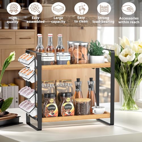 - مصممة لتدوم طويلاً وموفرة للمساحة، هل أنت منزعج من سطح الطاولة الفوضوي بسبب حبوب القهوة والأكواب والماصات؟ لا تقلق، يمكن لرف القهوة المطور الخاص بنا حل جميع المشكلات. منظم رف القهوة هذا مصنوع من المعدن والخشب الصلب، خفيف الوزن ومتين. يسمح لك التصميم ذو المستويين باستخدام أي سطح طاولة أو منطقة قهوة بشكل أفضل، مثالي للمطبخ أو المكتب أو غرفة الاستراحة أو تقديم الطعام، مما يسمح لك بالعثور على ما تحتاجه في لمحة.