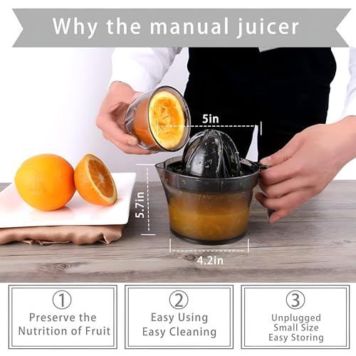 - بسعة كبيرة 17 اونصة (500 مل) هذه العصارة اليدوية مثالية لتخزين كمية كبيرة من العصير الطازج. تتيح لك الحاوية الشفافة مراقبة مستويات العصير بسهولة، مما يجعلها مفيدة بشكل خاص لوجبات الإفطار العائلية أو المغامرات الخارجية مثل التخييم.