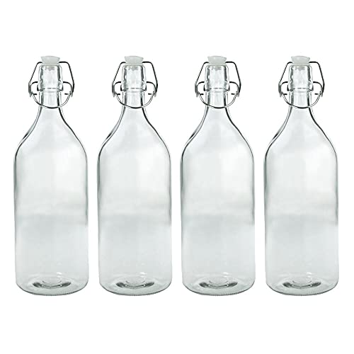 Lemon & Lime - زجاجة مياه زجاجية دائرية، 6 × 1 لتر بمشبك علوي، زجاجات زجاجية بغطاء قلاب من ليمون اند لايم