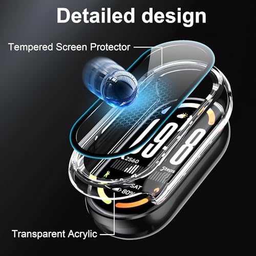 Lemxiee - جراب لساعة شاومي سمارت باند 10 من ليمكسي، حافظة مع زجاج مقسى، طبقة واقية اكريليك شفافة