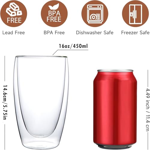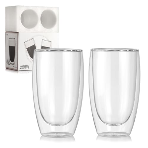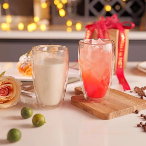 - زجاج حراري مزدوج الجدران من ليناوبين 2 × أكواب قهوة مزدوجة الجدران للشاي أو القهوة سعة 250 مل، 350 مل، 450 مل: الحجم المثالي للكابتشينو، مصنوع من زجاج البوروسيليكات المنفوخ بالفم.