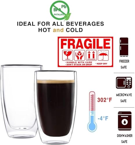 - بدون تبريد - أكواب الكابتشينو مصنوعة من زجاج مزدوج الجدران يحافظ على القهوة ساخنة لفترة أطول دون حرق يديك.