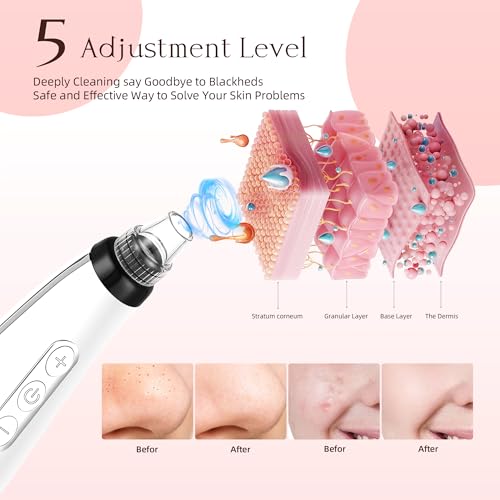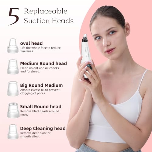 LENND - أداة إزالة الرؤوس السوداء، أداة استخراج الرؤوس السوداء، منظف مسام الوجه، أداة بيضاء كهربائية كوميدون، 5 قوة شفط، 5 مجسات، مجموعة شفط للرؤوس السوداء قابلة لإعادة الشحن بمنفذ USB من ليند