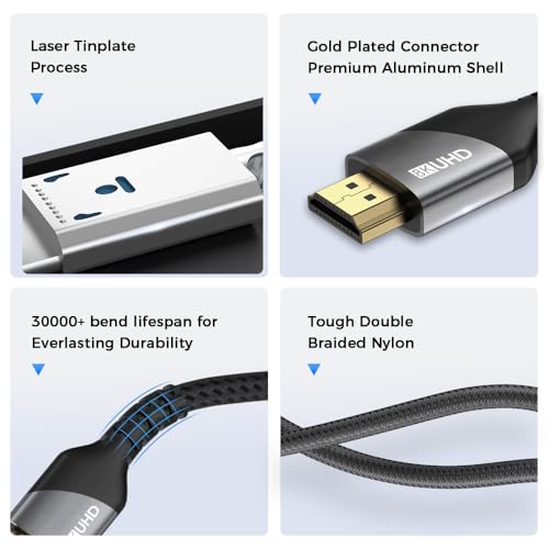 - 【عرض النطاق الترددي HDMI 2.1-48 جيجابايت في الثانية】: أطلق العنان للإمكانات الكاملة لأجهزتك مع معدلات نقل بيانات سريعة للغاية، مما يضمن اتصالاً سلسًا لجميع احتياجاتك عالية الدقة