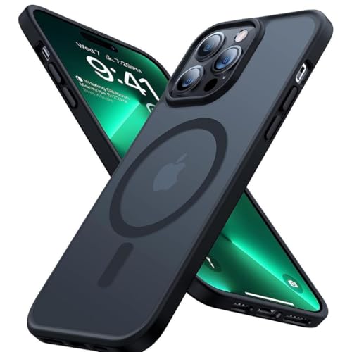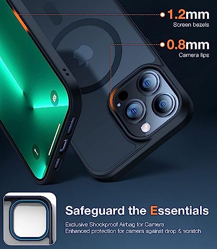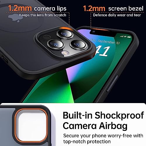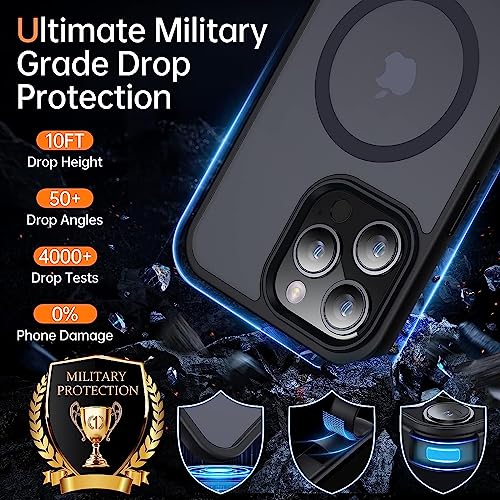 LENOK - جراب حماية مغناطيسي من لينوك متين لايفون 14 برو ماكس متوافق مع ماجسيف السقوط بدرجة عسكرية مقاوم للصدمات شبه شفاف مطفي لموبايل نحيف (اسود) سيليكون