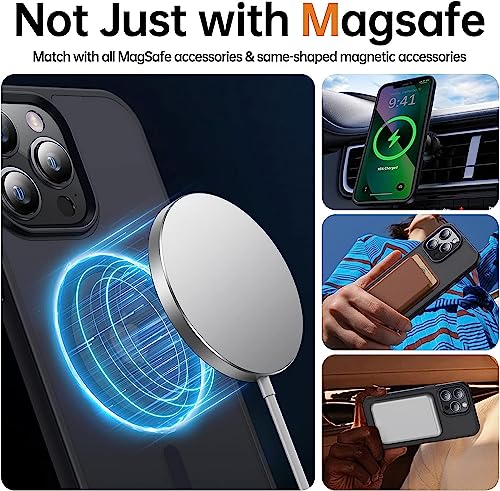 - 【جراب حماية مغناطيسي قوي مطور】: مع 38 قطعة مدمجة من المغناطيسات فائقة القوة وحلقتين مغناطيسيتين محسنتين، فإن القوة المغناطيسية لجراب ايفون 14 برو ماكس أقوى بمقدار 1.5 مرة من السماعات الرسمية وأقوى مرتين من غيرها. توفر أقصى قدر من التوافق مع ملحقات ماج سيف، مثل حامل السيارة المغناطيسي أو المحفظة أو الشاحن اللاسلكي أو مفاتيح فوبس، إلخ. لا حاجة إلى توجيه خاص ولا خوف من الصدمات أو الاهتزازات أو غيرها من أعمال الإزعاج، مما يجعل المطابقة أوسع نطاقًا والتركيب أسهل