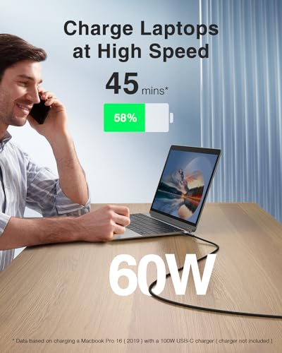 - 【يدعم توصيل الطاقة】: كابل شحن USB C إلى USB C يشحن موبايل ايفون 15 إلى 60% بسرعة أو يعمل على تشغيل ماك بوك اير 2022 إلى 50% في 30 دقيقة، ملاحظة: يمكن تحقيق طاقة مخرجة 60 وات (20 فولت/3 امبير) فقط مع شاحن USB نوع C بقدرة 60 وات أو أعلى.