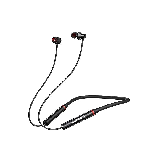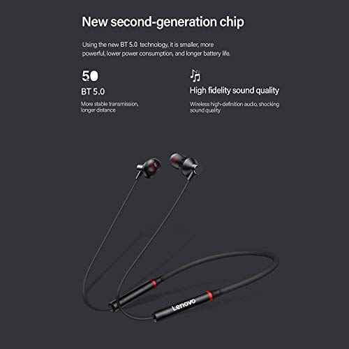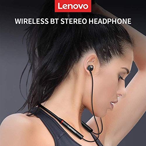 Lenovo - سماعة أذن HE05X لاسلكية BT BT5.0 مريحة في الأذن IPX5 الرياضية مقاومة للماء مع ميكروفون بخاصية الغاء الضوضاء باللون الأسود